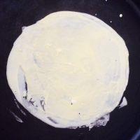 5.平底锅烧热后抹一层薄薄的油,倒入一勺面糊转动平底锅摊匀。