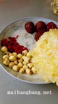 7.银耳莲子冰糖放入锅中,水没过两三指(水一定要加足)
