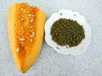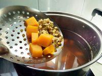 5.煮至绿豆稍微开花,下入南瓜块,继续煮。
