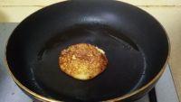 4.锅中倒入适量的油,用勺子舀一勺面糊至锅中。