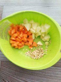 1.苹果洗净去皮去核切小块;胡萝卜洗净去皮切小块;燕麦冲洗干净