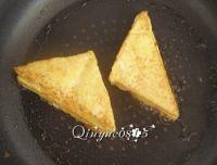 8.放入沾匀蛋液的组合土司,慢煎(注意把每个边也煎好)