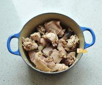 4.焯过水的孔雀肉块放入炖锅内。